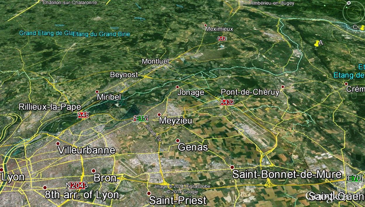 arriba: Localización (A) respecto poblaciones próximas y Lyon.